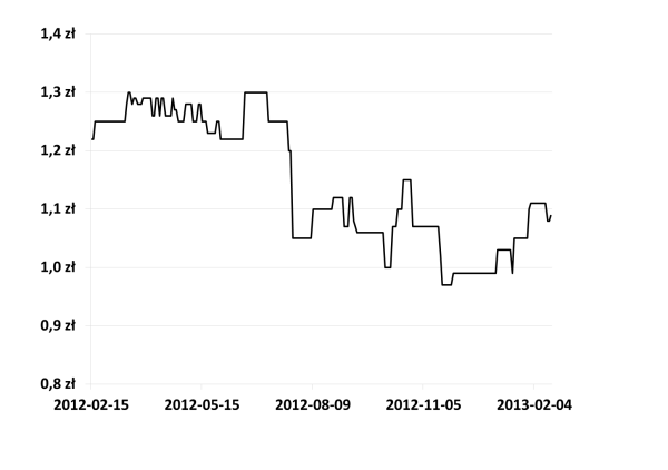 W dniu 14 lutego 2013 r. Zarząd Spółki poinformował o zawarciu umowy, w której Kontrahent zobowiązał się do zapłaty na rzecz Spółki kwoty zobowiązania w wysokości 434.074,99 zł oraz dalszych odsetek ustawowych. Ostatnia płatność ma nastąpić do dnia 19 maja 2013 roku.