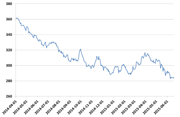 Notowania NC Index w okresie 1 kwietnia 2014r. – 19 czerwca 2015 r.