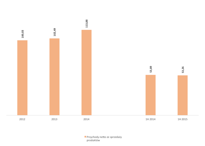 Po pierwszym półroczu 2015 r. odnotowana sprzedaż wyniosła 53,26 mln zł, tj, o 630,32 tys. zł mniej niż w analogicznym okresie roku 2014 r. EBITDA i zysk netto wyniosły odpowiednio 3,40 mln zł i 1,45 mln zł, wobec poprzedniego roku jest to spadek o 13,86 tys. zł i 43,46 tys. zł. Warto jednak zauważyć, że w samym drugim kwartale 2015 r. sprzedaż wzrosła o 8 proc., EBITDA o 45 proc., zaś zysk netto o 128 proc w porównaniu do analogicznego kwartału 2014 r.
