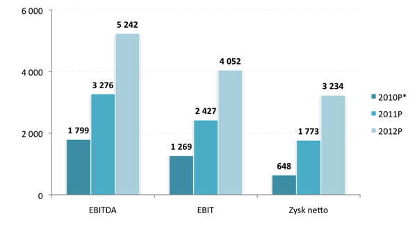 Rys. 2. Prognozy finansowe na lata 2010-2012 spółki InwazjaPC S.A. (mln zł)