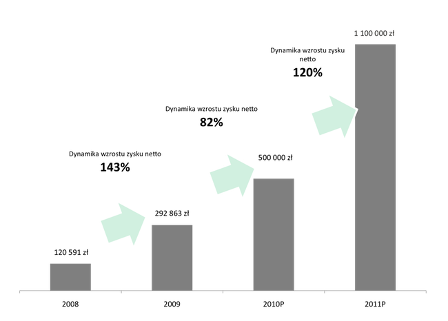 Wzrost wartości przychodów w połączeniu z optymalizacją struktury kosztów powinien w przyszłości zaowocować wysoką, kilkudziesięcioprocentową dynamiką wzrostu zysku netto.