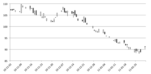 Wykres 2. Notowania NCX Life Science w okresie 2.11.2010 – 31.01.2011 (w punktach).